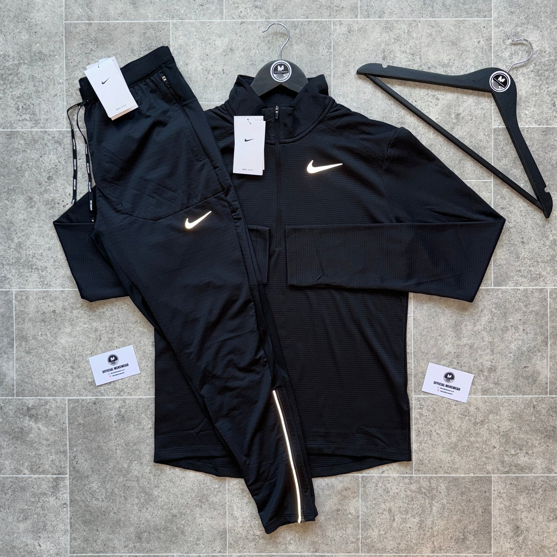 Smash your gym goals with the Nike Pacer 1/4 Zip Set. This Nike Quarter Zip features a lightweight, comfortable and slim fit as well as reflective details. The Pacer 1/4 Zip utilises Dri Fit technology to wick away sweat and is paired with the Nike Phenom Elite Pants in a Black Colourway to complete the look, which provide a slim, comfortable fit with zip up pockets.