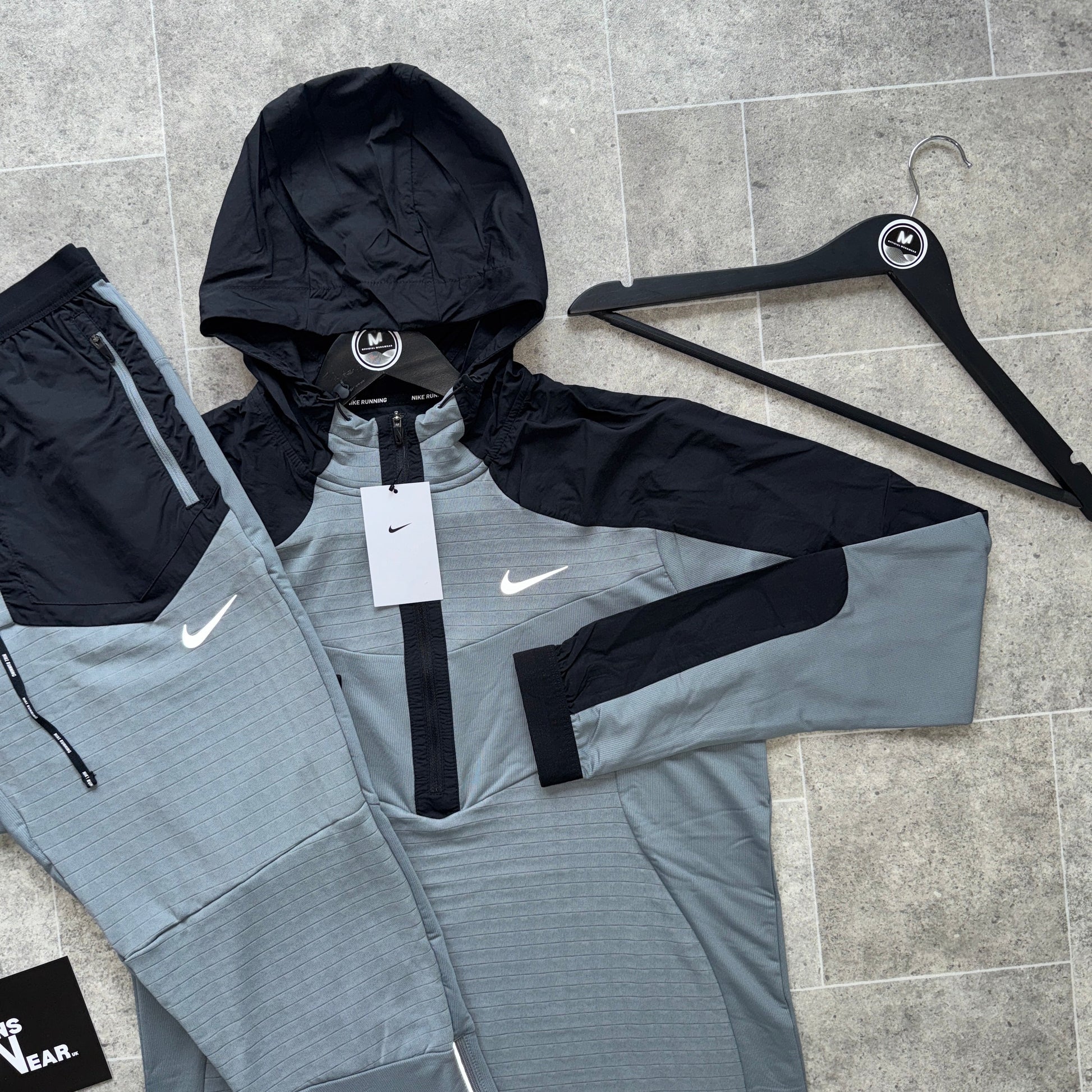 Push on further with the Nike Performance 1/4 Zip Jacket Set in a popular Grey colourway. This Nike Quarter Zip features a lightweight, comfortable and slim fit as well as reflective details. The performance 1/4 Zip Jacket utilises Dri Fit technology to wick away sweat and is paired with the Nike Performance Pants in a matching Grey colourway to complete the look, which provide a slim, comfortable fit with zip up pockets.
